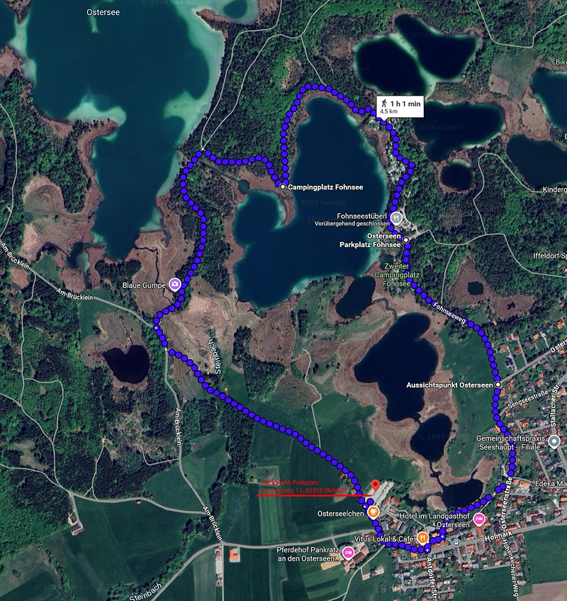Treffpunkt: Parkplatz Osterseen, Fischersteig 11, 82393 Iffeldorf (siehe Karte links)